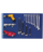 Det er en solid stålplade med kvadratiske huller på 9x9 mm placeret med en centerafstand på 34 mm. Farven er blå.