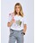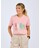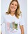Her præsenteres en T-shirt til damer, der er fremstillet af 100 % genbrugsmateriale fra bomuld og polyester. Stoffet er både blødt og smukt meleret og prydet med et tryk på forsiden. Da farven på stoffet stammer fra genbrugsmaterialet, undgås behovet for en ny indfarvningsproces, hvilket resulterer i betydelige besparelser af vand og energi. Modellen har et feminint snit og en flatterende V-hals.